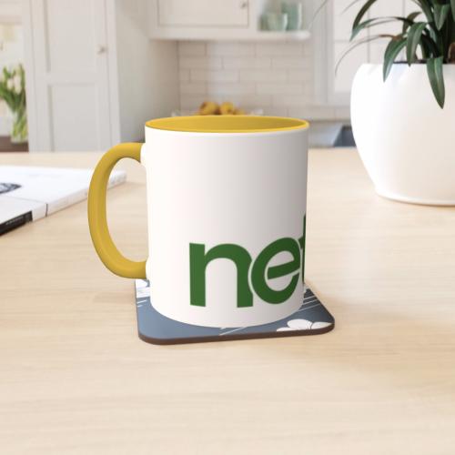 Choose from a basic white mug or add a bit of colour and match your brand with our 2 tone mugs feature a coloured handle and rim to create a feature piece.